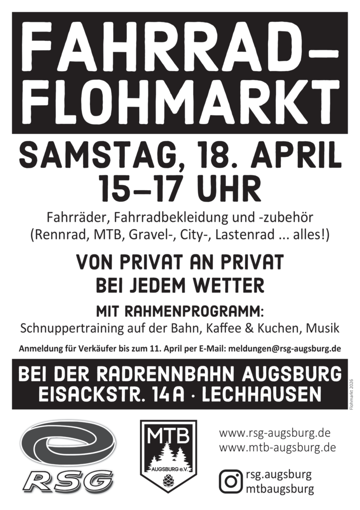Ab dem 08. Januar 2026 findet jeden Donnerstag um 18:00 Uhr ein Bahntraining mit Fokus auf den Rennsport auf der Radrennbahn Augsburg statt. Hier werdet ihr bis zum Saisonstart Anfang April gezielt auf alle Bahndisziplinen vorbereitet.